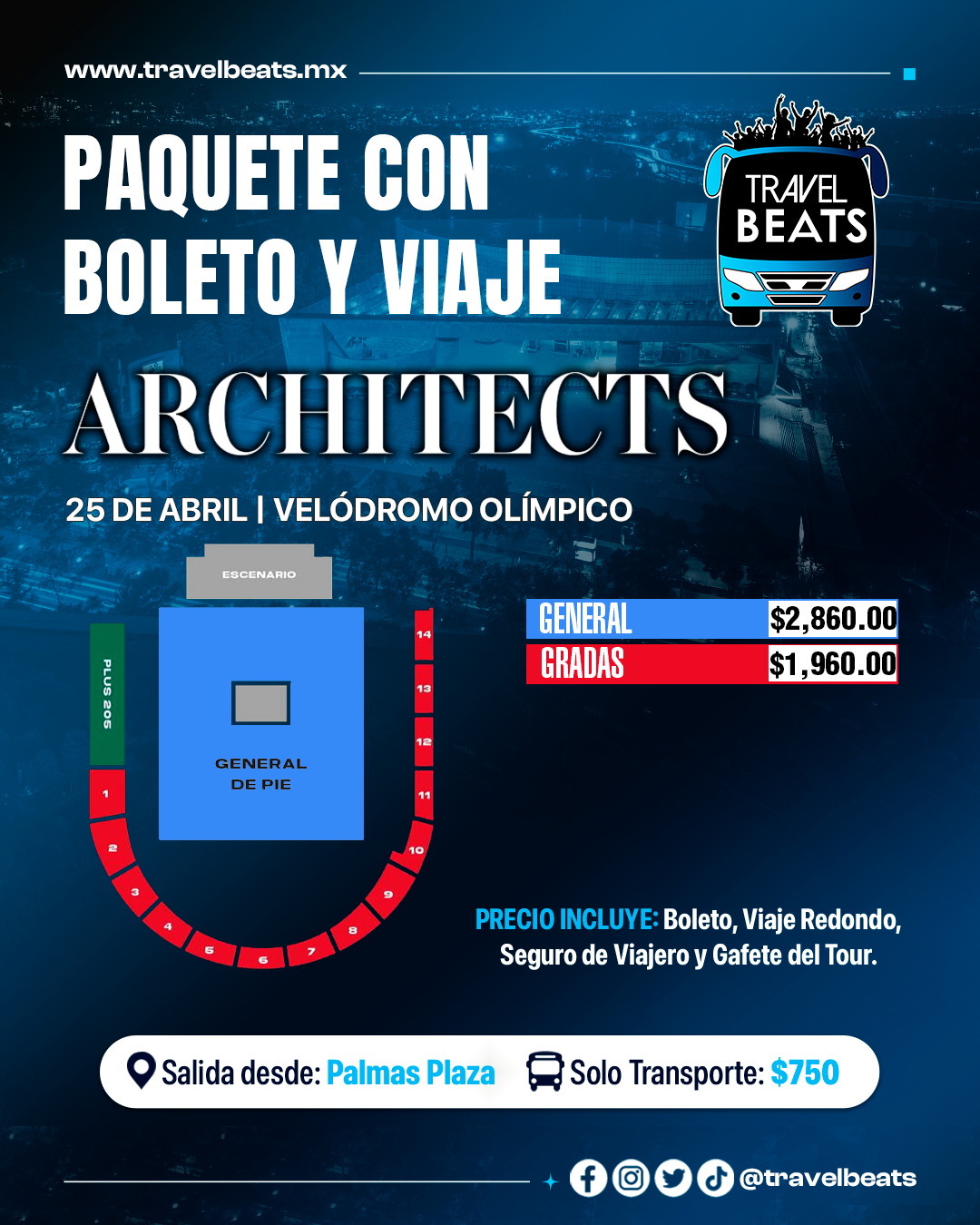 TRAVEL BEATS: Tu agencia de viajes a conciertos desde Puebla te lleva a disfrutar el concierto de Architects en el Velódromo Olímpico, no te pierdas de este gran evento. #EnjoyTheGigs!