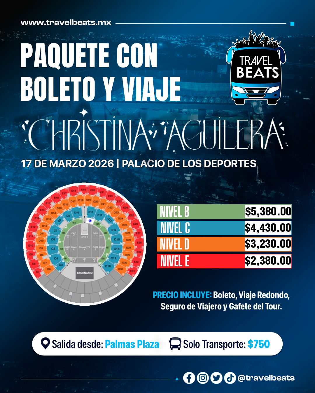 TRAVEL BEATS: Tu agencia de viajes a conciertos desde Puebla te lleva a disfrutar el concierto de Christina Aguilera en el Palacio de los deportes, no te pierdas de este gran evento. #EnjoyTheGigs!