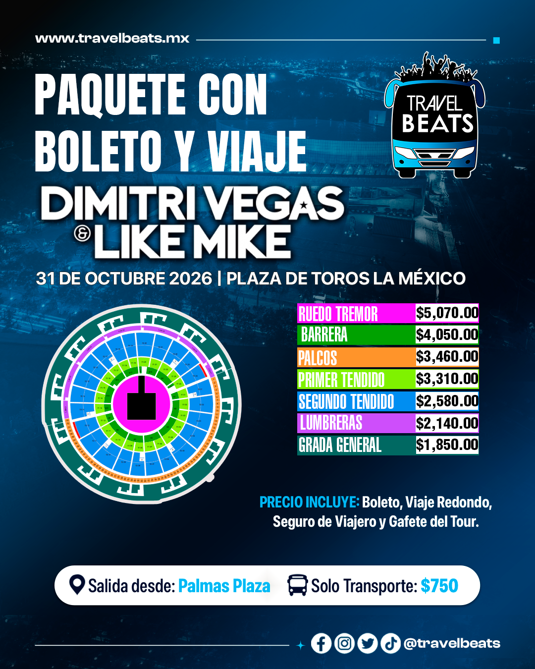 TRAVEL BEATS: Tu agencia de viajes a conciertos desde Puebla te lleva a disfrutar el concierto de Dimitri Vegas & Like Mike en La México, no te pierdas de este gran evento. #EnjoyTheGigs!