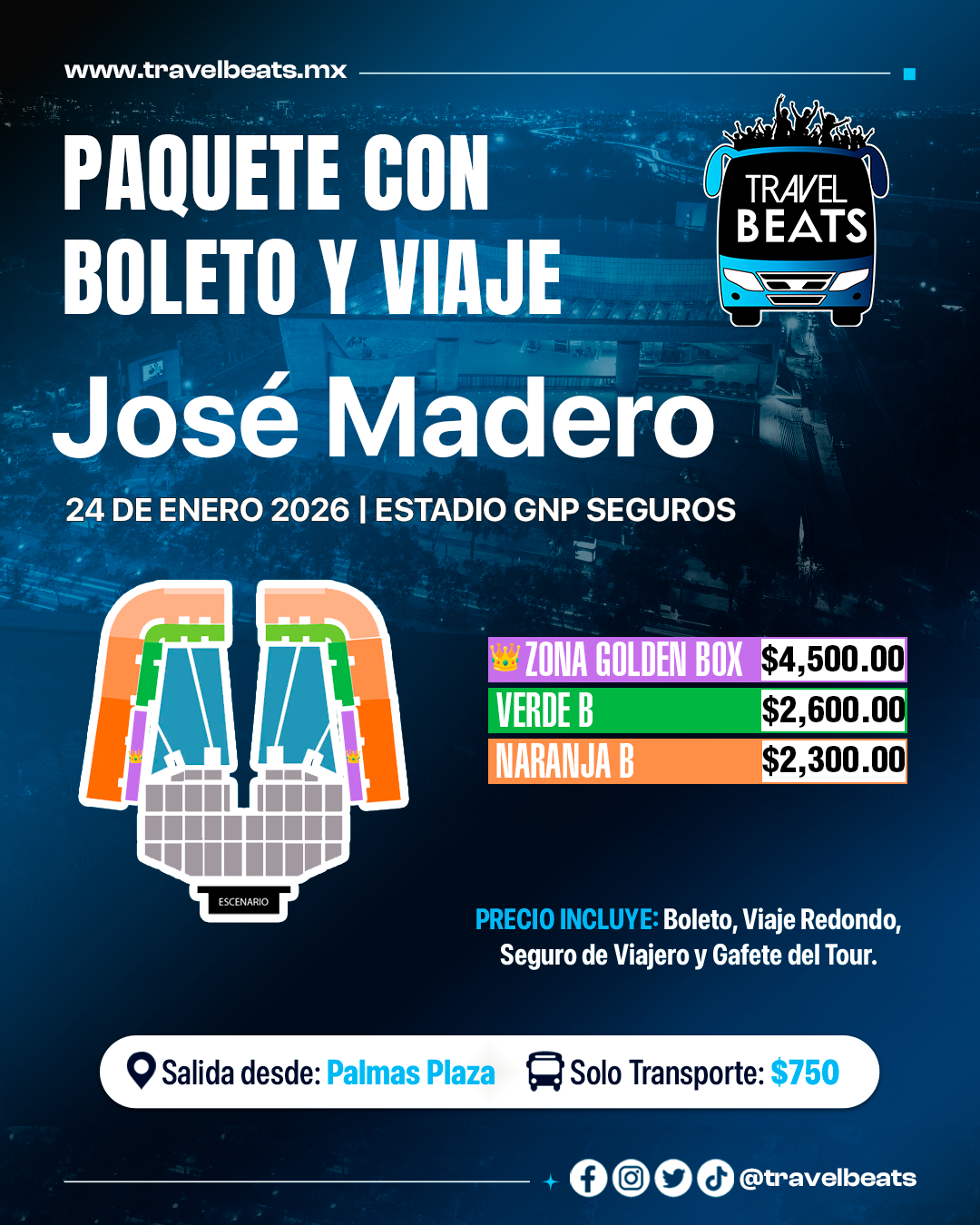 TRAVEL BEATS: Tu agencia de viajes a conciertos desde Puebla te lleva a disfrutar el concierto de José Madero en el Estadio GNP Seguros, no te pierdas de este gran evento. #EnjoyTheGigs!