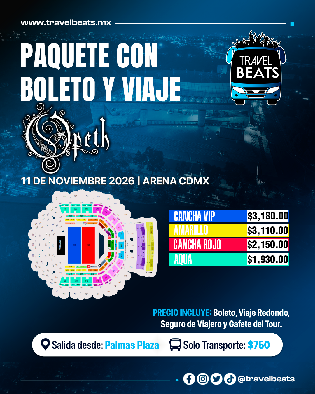 TRAVEL BEATS: Tu agencia de viajes a conciertos desde Puebla te lleva a disfrutar el concierto de Opeth en la Arena CDMX, no te pierdas de este gran evento. #EnjoyTheGigs!