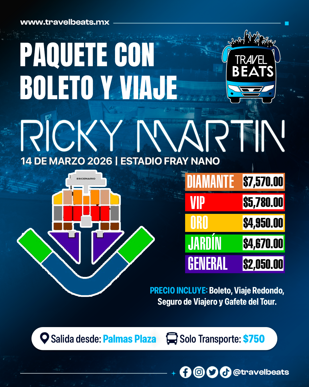 TRAVEL BEATS: Tu agencia de viajes a conciertos desde Puebla te lleva a disfrutar el concierto de Ricky Martin en el Estadio Fray Nano no te pierdas de este gran evento. #EnjoyTheGigs!