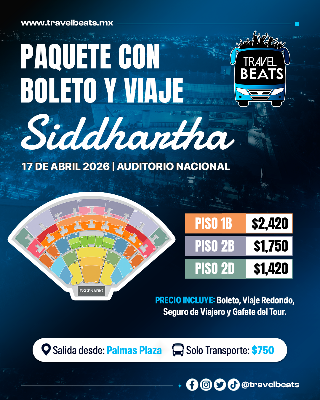 TRAVEL BEATS: Tu agencia de viajes a conciertos desde Puebla te lleva a disfrutar el concierto de Siddhartha en el Auditorio Nacional, no te pierdas de este gran evento. #EnjoyTheGigs!